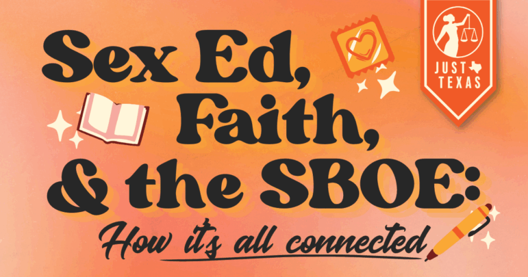 I’m Shan, TFN’s Just Texas program manager. I’m here to talk about how sex ed, religion, and the SBOE are all connected, what Just Texas is doing about it, and how you can get involved.